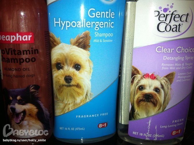 Купила всякие новые шампуньки Доське от колтунов и спрей,будем шерсть растить)