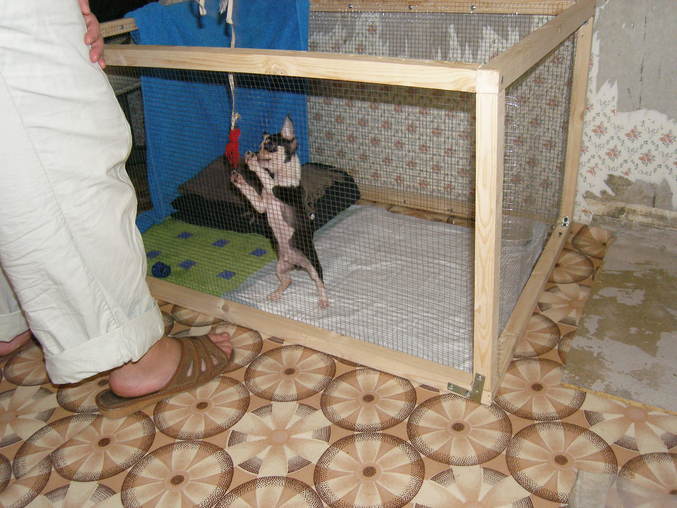 Поздравляю с приобретением! Первое время любого щенка необходимо держать в вольере, чтобы приучить к порядку и пеленкам. Мы своего держали вот в таком самодельном, если надо - забирайте =)