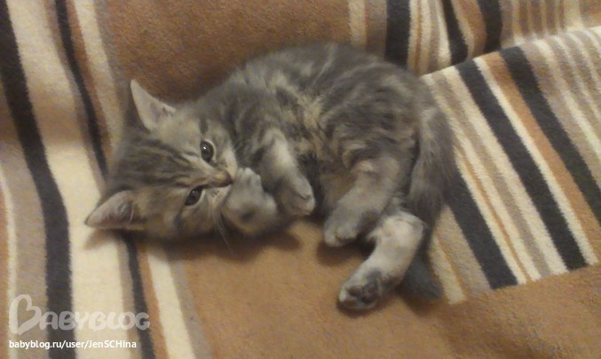 Через примерно две недели все испортилось на глазах. Кот окреп и подрос, начал кидаться на руки-ноги и провода. Один раз на выходном Миша с ним долго играл (не мучал, следила, максимум таскал на руках) и перед вечерним сном кот нагло залез к нему в кровать и практически у меня на глазах туда нассал. Я его наругала, показала лужу, чтобы знал за что. Где-то через часик, решила его приласкать и накормить мокрым кормом, чтоб не дулся. Он поел, отошел от миски и надул на коврик около двери.. А после этого посыпалось. Я ругаю, он назло гадит, замкнутый круг...
