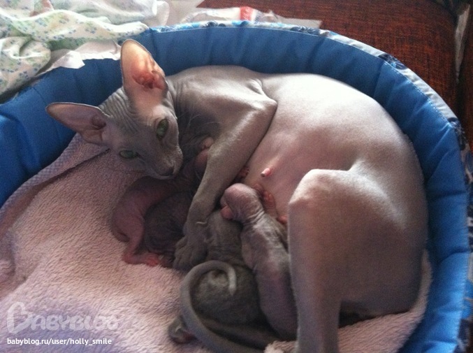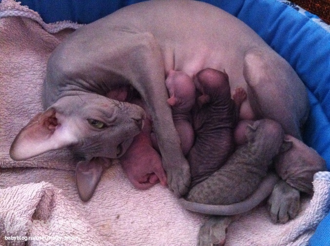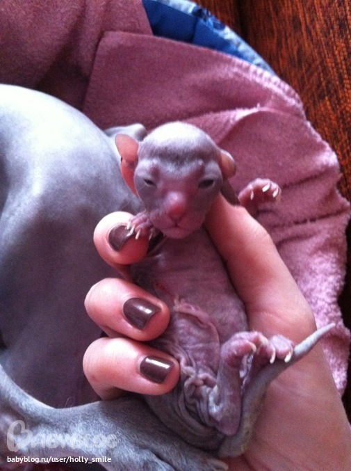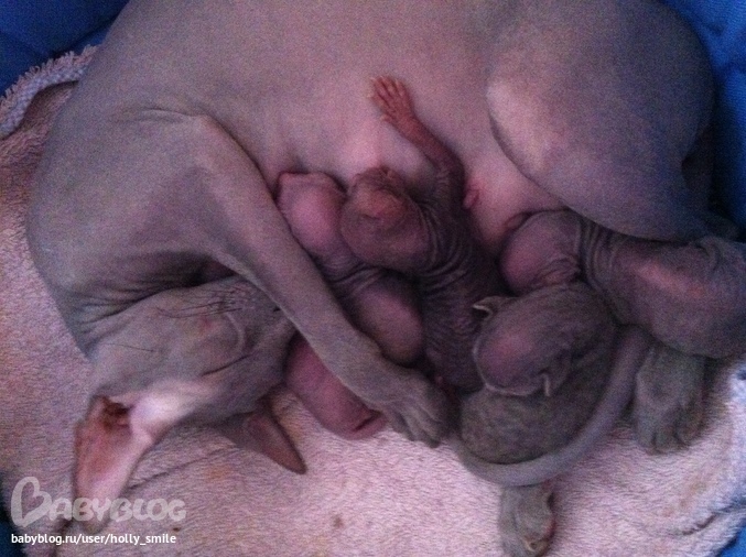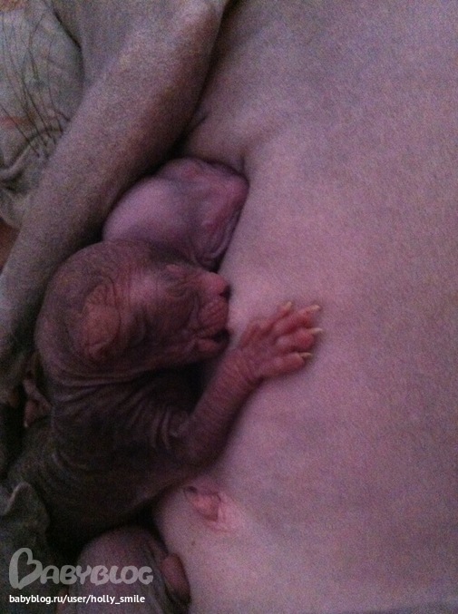 Лысики открыли глаза сразу после рождения и даже кто то родился с открытыми...а велюрка открыл чуть позже на 2-3 сутки!по окрасам пока вообще ничего не понятно,будем ждать актировку,а то отправляю фото заводчице нашей и каждый раз разные варианты:то лиловые,то голубые,то голубой табби!а еще вроде как клуб дал букву "Ф"