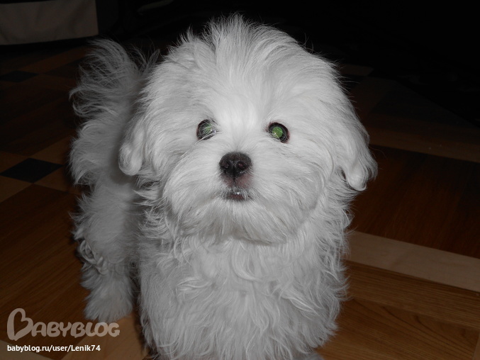 Малипусенька. Очень-очень-очень трогательное существо. Но вот никогда не подумала бы, что щенок будет устраивать гонки по квартире. Туда-сюда, туда-сюда... Благо площадь квартиры в соотношении к размеру собаки позволяет устраивать марафонские забеги. :-)))