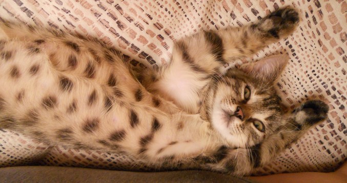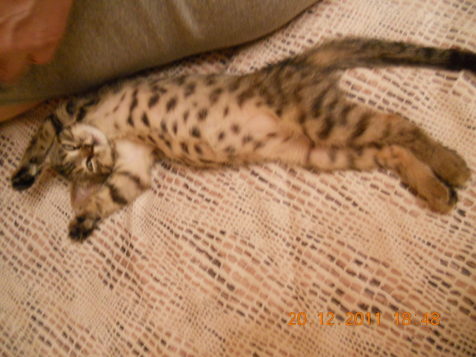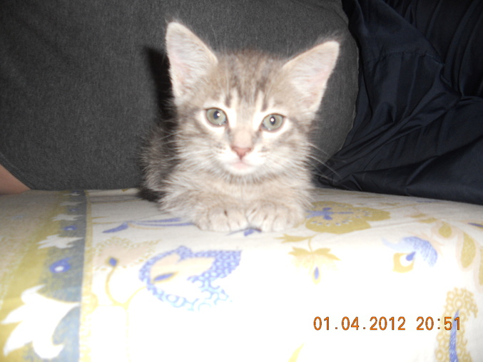 Ее нам навязали дамы с рынка, куда мы приехали за лампами для аквариума. На сл.день котенку стало тошнить, рвало. Я уверена, что кормили ее прогорклым просроченным кормом, также у нее был неприятный запах из ротика. Бегала через дорогу в вет.кабинет, ставили уколы. Вылечилась, научилась ходить в горшок и была пристроина через Авито. Кошь нежная, фся такая трогательная, ласковая, ручная. Отдавала и плакала.