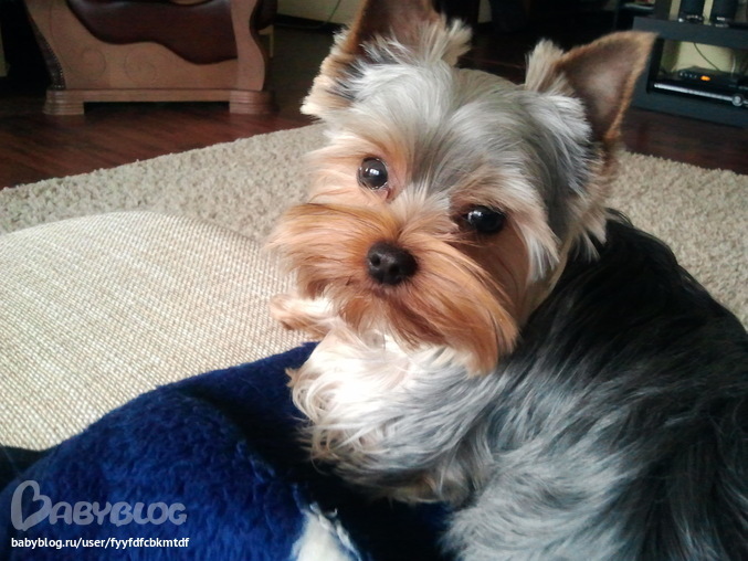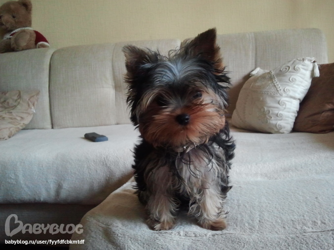 Меня всега привлекали крупные породы, которых можно за морду потрепать, побеситься с ними и ночью на улицу не страшно выйти. Был у нас замечательный пес (царство ему небесное) мастино неаполитано голубого окраса, очень верный, добрый и ласковый. Но.........его больше с нами нет. В прошлом году в начале апреля позвонил мне мой двоюродный брат, они с ребятами на стадионе гоняли и нашли там йорка. Часа 3-4 искали хозяев, уже начало темнеть и он мне предложил взять его себе. Я очень долго колебалась и в итоге согласилась. 3 дня это чудо жил у нас. Я так к нему привыкла, нет я в него просто влюбилась. В итоге нашлись хозяева и мы естественно его вернули. Я рыдала................. Но не долго, прекрасно понимая и хозяев и собаку, что рано или поздно это должно было произойти, на семейном совете было принято решение завести свою. И в мае у нас уже появился наш самый любименький, умненький и послушный Степан. По паспорту он Клифорд, но увидев его мы поняли что Степашка ему идет больше