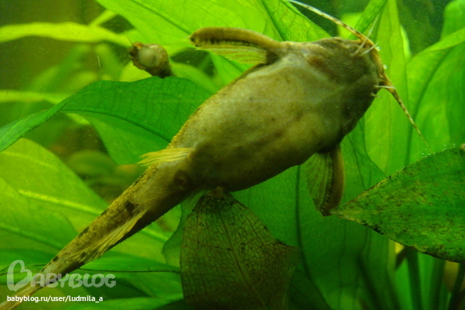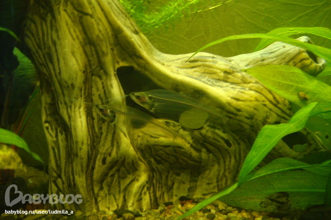 Рыбки, аквариумыПара дохликов, зовем мы их ласково. Живут в аквариуме давным-давно, но большую часть времени мы про их существование забываем вообще, ибо рыбки эти странные, за исключением редких всплесков активности, лежат закопавшись в грунт или спрятавшись и не подают признаков жизни. Можнодаже в руки взять спокойно. Когда мы переезжали, всех рыб разместили в 2х 5 литровых баклажках, и, к великому сожалению, в одной банке погибли все сомы(сомы были отдельно). Эти тоже выглядели совсем неживыми, я уже собралась выбрасывать, но засомневалась и положила таки в аквариум, а они и поплыли) так вот и живут, иногда появляясь перед глазами, а потом на долго исчезая. Как зовут, чем и когда питаются-не знаю, но толстенькие, значит, таки питаются))