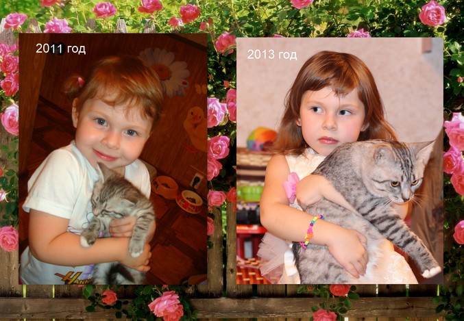 Если на первой дочка с неописуемым восторгом держит животину, то на второй уже на личике написано "как же ты мне надоел":))))