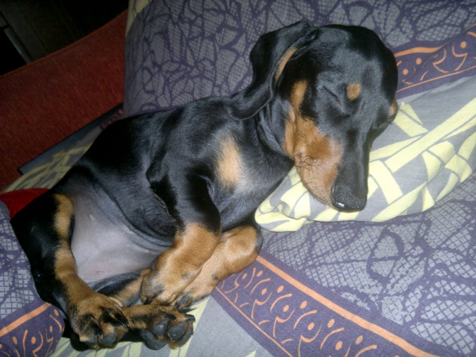 ! Очень уж таксятки любят в хозяйской постельке спать!