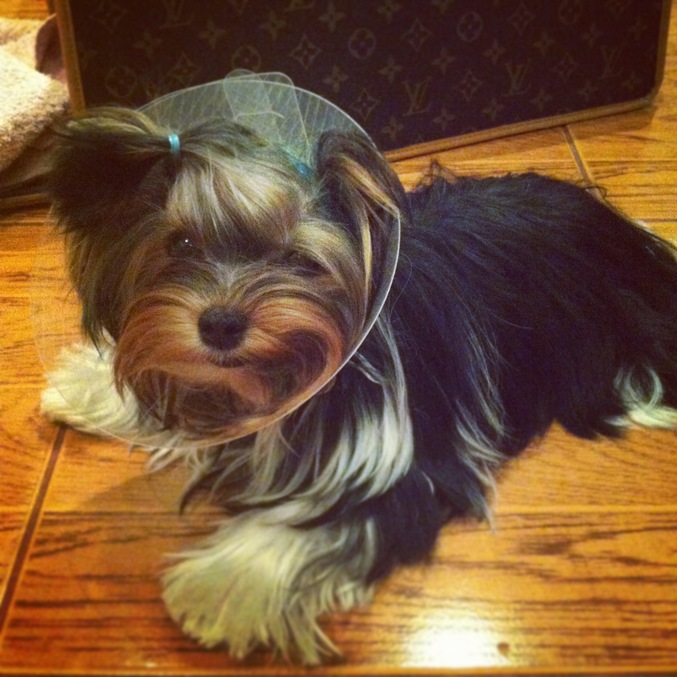 ну и воротник надо носить,у Дольки протест,она не ест не пьет в нем..