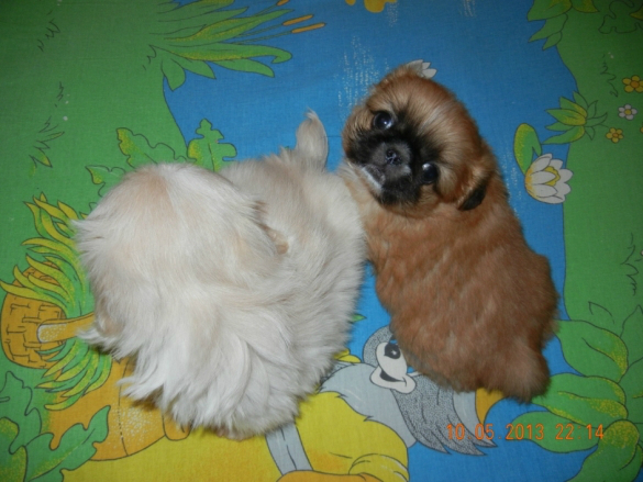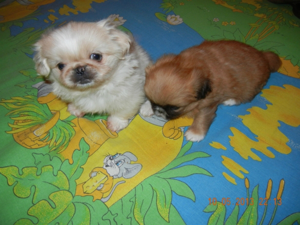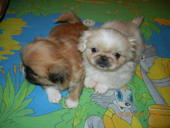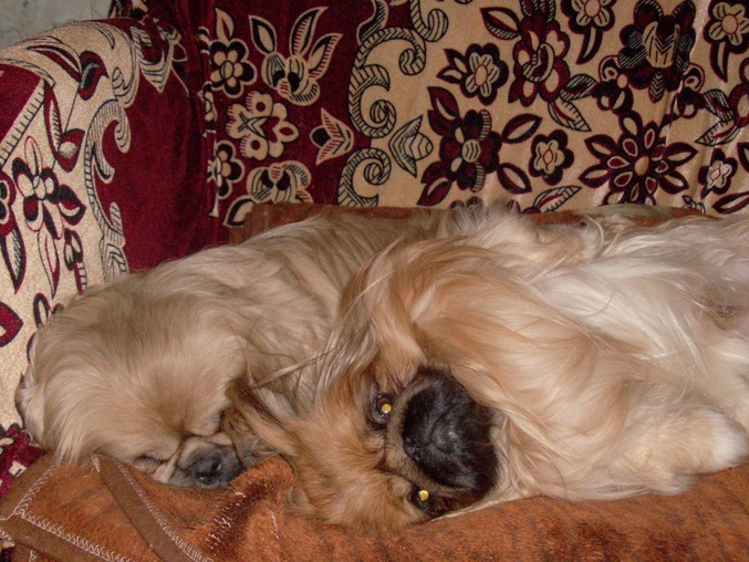 Живет в нашей семье уже 7 лет пара пекинесиков :) а ЭТО ИХ ДЕТКИ. 9лет назад очаровательного щенка мы с мужем подарили дочке, когда она пошла в 1класс. Щенок вырос и превратился в офигительного гордого красавца. имя ему дали Босс (ласково Босик), ну а как еще назвать собаку с большим тщеславием. Бося позволяет себя любить! Любит ли он нас? Конечно, но каждого члена нашей семьи по-своему.... мужа уважает, меня любит и позволяет мне вольности больше чем другим, детей лишь терпит. Через 2 года у нас появилась Ася, мы хотели купить подружку своему красавцу и я отправилась в питомник....первая подбежала ко мне она! Смешная и не казистая такая... а ГЛАЗА СВЕТЯТСЯ! Я посмотрела ей в глаза и поняла - эта собака должна быть моей! Вот так к породистому и горделивому самцу привезли 2-х месячную смешную Асю. Ася пыталась найти тесный контакт с будущим мужем, ей всегда хотелось быть к нему ближе, полежать на его роскошном хвосте, во время прогулки не отходила от него...Бося же был и есть к подружке прохладен. Со временем у них сложились интересные отношения. Они скучают друг без друга, когда их разлучают...самые лакомые кусочки ест Босс, но к миске с водой как бы он сильно не хотел пить, даму пропускает всегда в перед :))) Бося уважает свою независимость и предпочитает полежать в одиночестве, Ася же ищет повод к общению с ним, особенно на прогулке начинает заигрывать с ним, любит его подразнить. Стена неприступности падает дважды в год, во время течки... тогда Ася может вдоволь отомстить за все свои унижения перед мужем :))) У нас же начинается веселенький период....Я собственно не сторонник частых вязок, мне очень жаль Асеньку, ведь роды и выкармливание щенков очень изматывают её. В этот раз Босику удалось уломать Асю и родились у нас 7щенков!!! Рожала Ася 12 часов и если бы не помощь нашего друга-ветеринара не знаю чем бы все закончилось... одного щенка мы все-таки потеряли. Щеночки подросли и четверо уже живут в новых домах, а эти двое вот еще ждут своих хозяев :))) Асю мы твердо решили далее оградить от последующего материнства. Эту добряшку мы любим и потерять её не хотим!