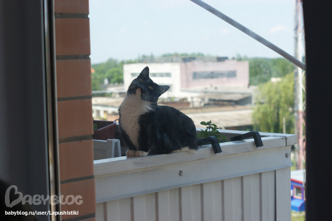 Симпапулька! Только на фотку с балконом смотреть очень страшно!!! Мы везде, где только можно, сетки поставили. Боимся за храбреца))))