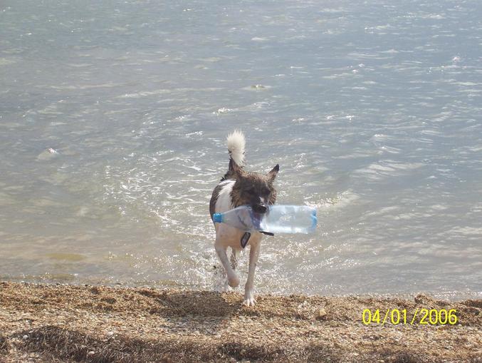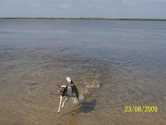 Очень любит море, как в общем то и я. На море ей нравится играть в палки, бутылки и прочие игры, в городе она на улице не играет вообще...