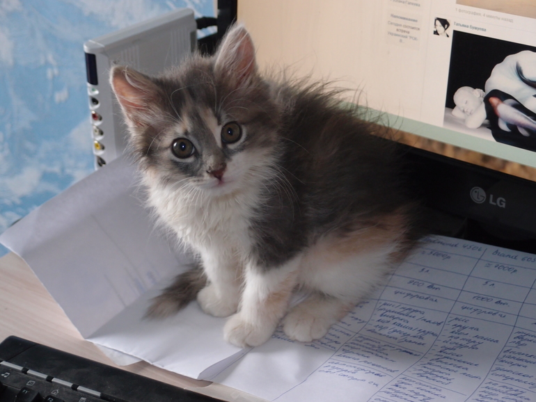 Глазки у Кнопы чистые, шерстка ровная, котенок активный... Правда, в сравнении со своей сестричкой ест маловато...