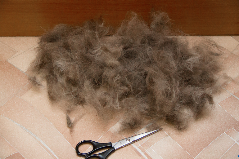 ох уж этот "случай")))в линьку вычёсываю шерсть размером с футбольный мяч)))она спокойно сидит у меня на коленках и не брыкается-с полуторамесяцев её приучала))