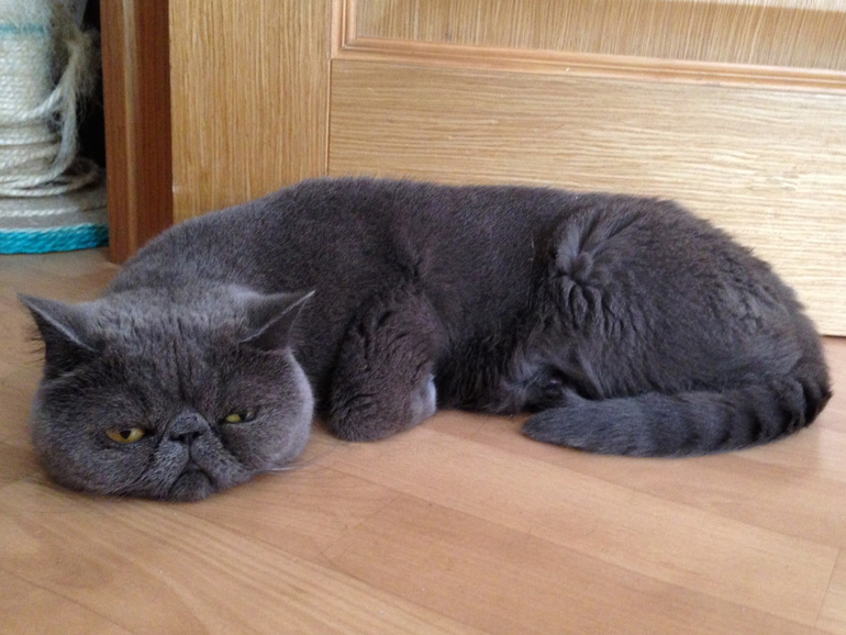Наши любимцы!Жалко животное... Жарко - по полу стелется, где попрохладнее..