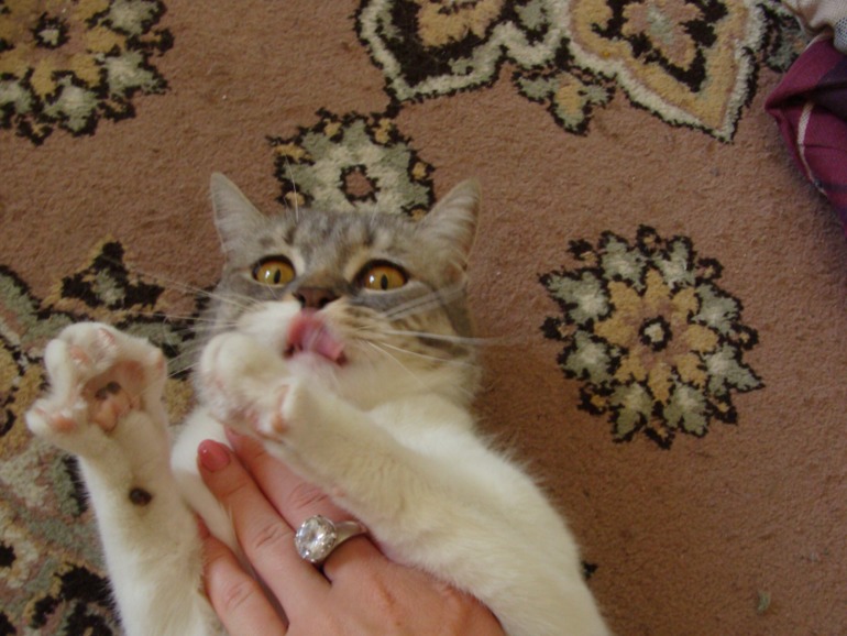 Через 10 дней сняли "халат"(перевязку) и что вы думаете? Она сразу дернула на улицу! Хотя до этого никакого виду не подавала и не намекала что она туда пойдет.. даже в окно не смотрела.. Ну погуляла, потом видно поняла, другая жизнь! Еще неделю кошка ходила тихо.. ела, спала, ела.. Потом впала в детство! Резко так )) Я ее такой не видела с конца апреля, как она кота запросила )) Носится как ураган по дому, играет с мячиками. Иногда выбегает на улицу бегает за птицами и бабочками, но только в огороде и быстро возвращается домой.