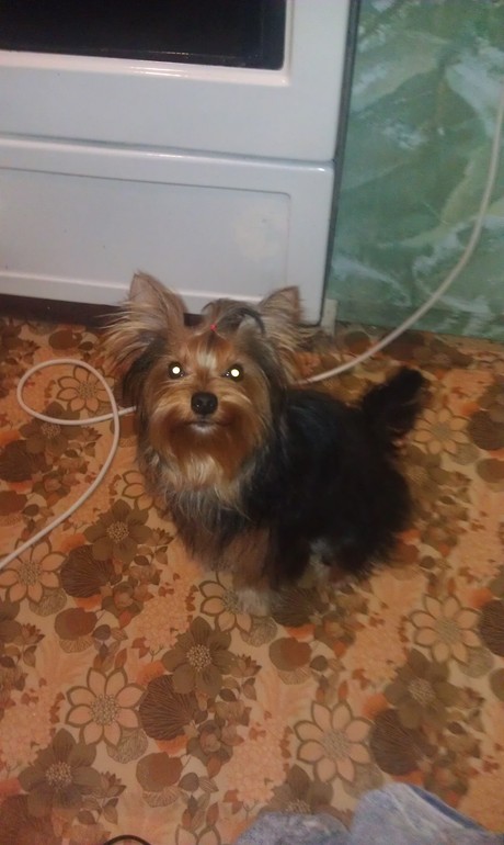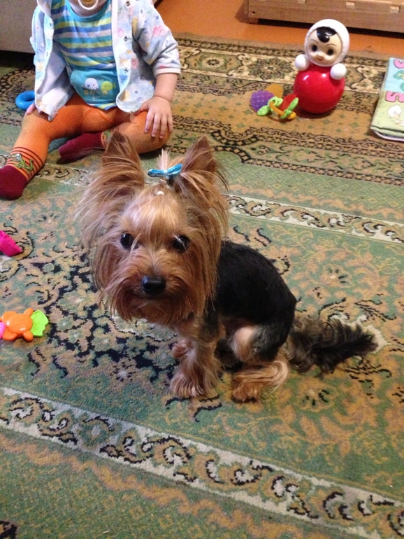 ваш красавчик))) мы своему пока волосы на башке убрали, тк ребенок маленький и хвостики делать нет времени собаке.вашему сколько? как с ребенком ведет себя?
