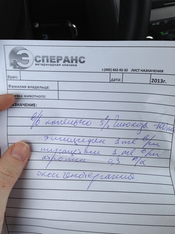 Так вот,приехала я к маме, Лорка уже под наркозом и ей дергали-чистили зубы,все шло хорошо,мама пошла с Сашей заниматься,а я следить и держать собаку....между делом было сказано им ,что первый раз наркоз не взял ее колол второй и внутримышечно(обычно в вену),к чистке зубам и удалению претензий нет,все сделал нормально!!!Потом он поставил ей укол (из того что помню)