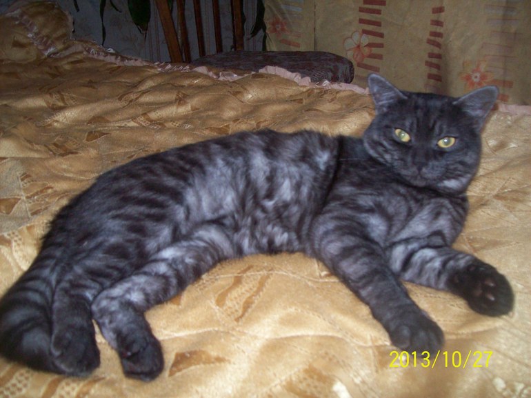 У меня есть отличная кошка из этого питомника и с правильным дымом, Олю Голикову безмерно уважаю. :) А те дымные котята, которые сейчас предлагаются, с точки стандарта окраса не правильные, но такое часто встречается при вязке с рисунчатым предком. Дым - это солид (сплошной окрас) с серебром, не должно быть полосок и остаточного рисунка и выбеленности. Такие дымы с резким контрастом и муаром хороши в работе с рисунчатыми окрасами, но на выставках им ничего не светит.