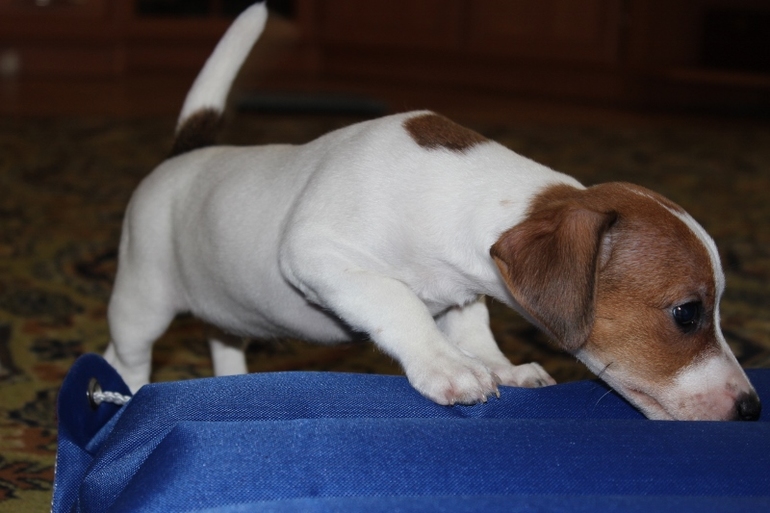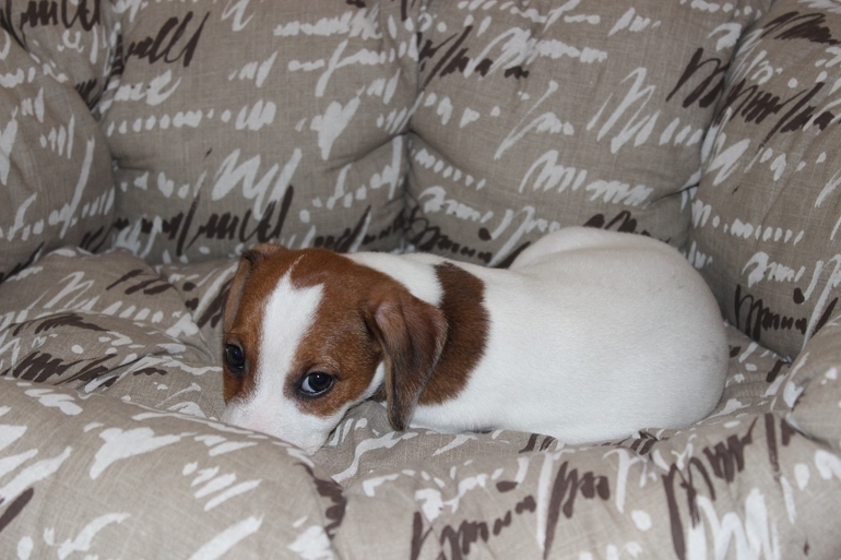 Забавные и милыеДевочки, у нас в семье появилось чудо!!! Зовут это чудо Никита, она же Ника-шилопоп))) Ника-Джек Рассел терьер, со всеми вытекающими последствиями... Но данную породу выбрала я не случайно, уж больно характер её мне по душе))) Я очень долго решалась на данный шаг. Муж меня отговаривал, мол и так забот хватает, а тут еще и собака! Но месяц моих уговоров и каждодневных рассказов о собачках, и вот мы уже везем нашу красавицу домой! Итак, наша НИКА (здесь ей две недели)