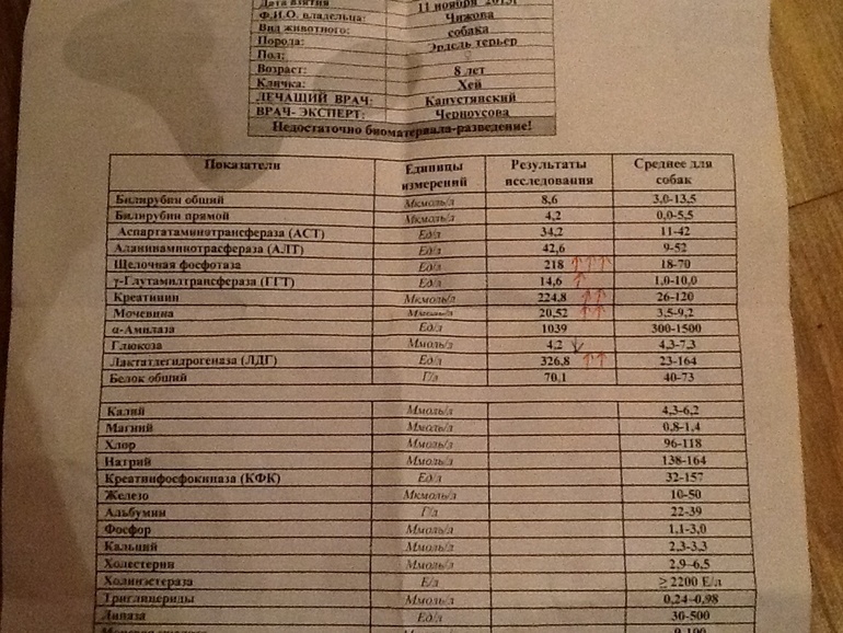 Странно, что в Москве много клиник, а вы обращаетесь сначала в человеческие. Реактивы для анализов одни, а показатели разные с людьми. С собакой медлить нельзя, надо просто в колокола бить! Ведь есть круглосуточные клиники, везите собаку. Мы вот сестру нашей Гарды потеряли, проблемы с почками были, не выдержала девочка. Вы можете потерять собаку!!! Это и заболевание м.б., и вирус...