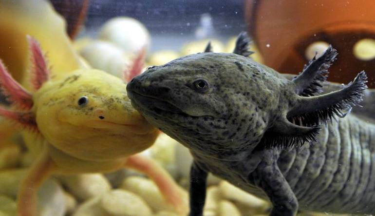 Это вот такая штуковина. Личинка земноводного - амбистомы. В аквариуме смотрится очень круто. Эдакий водяной дракончик. Уникальность его в том, что он может никогда не стать взрослой особью и при этом нормально размножаться. А если надоест в таком виде, то можно самостоятельно его перевести в состояние взрослой особи. Тогда получается вполне себе обычная ящерица.
