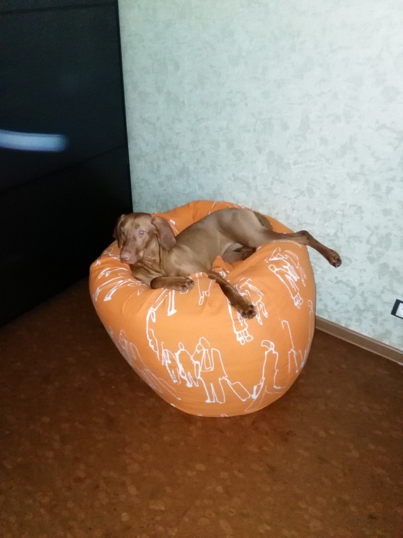 Мы тоже хотим с выжлами гулять! Нам катастрофически не хватает активов. В р-не нет выжл ни у кого. А стая, с которой каждый вечер встречаемся, они очень быстро устают, наша сначала их вымотает, потом одна круги нарезает на полном ходу))) Народ смеётся, спрашивает, чем кормите её... )) На первой фотке да, конечно деточка старалась, очень ждала нас) обуви поела просто массу, вчера вот только тапки выбросили ещё одни)) Зимой мы тоже одевали собаку, я ей кофту шила синтепоном утеплённую)) иначе она сразу дрожать начинала, как только за дверь. Пузо совсем голое было, розовое. По-началу даже тапки купили ей, нежные щенячьи лапы реагентом разъедало, чуть походили, и не стали больше. А сейчас смотрю, пузо шерстью обросло. Кормили сначала натуралкой, кашами и пр., но то, простите, понос, то золотуха. Решили сухой корм давать. Перевести совсем на сушнину не смогли привереду свою, варим отдельно курочку или говядину и 50/50 смешиваем с кормом, вроде лопает.