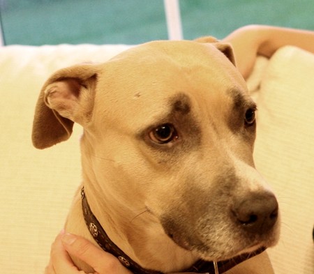 vot u menja doma zivjet boshaja sobachka (35kg) Am. staff. Ona ochen milaja, dobraja, radostnaja..Koroche ljublju ja ee.