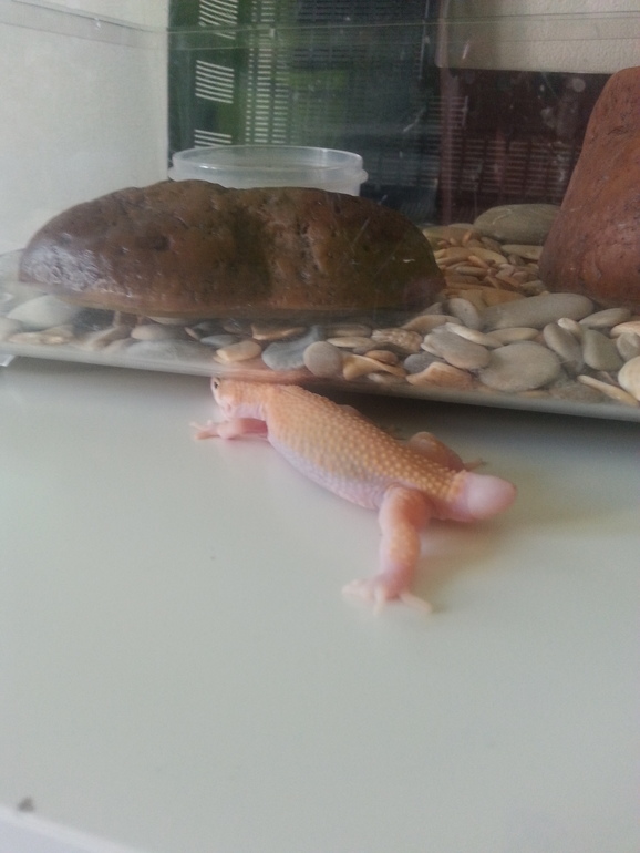 Я писала как- то, что у нас появился эублефарчик, сын с ней носится с утра пораньше,, и как- то он с ней так упал, что она откинула хвост и сейчас его отращивает, наблюдать очень интересно, кормлю ее я, дети только смотрят, папа не участвует, фукает))) ноги задние толстенькие, ползает не так шустро, хвоста нет некуда откладывать пищу про запас)))