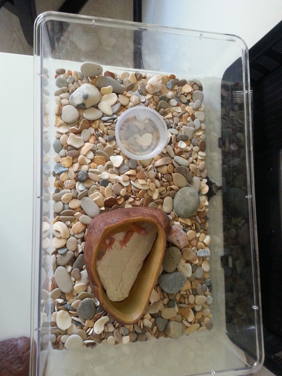 о здорово, я своим тоже хотела улиток, но по уходу что то сложновато и побоялась что мои разобьют им панцири, от ящерицы то периодически отгоняю))