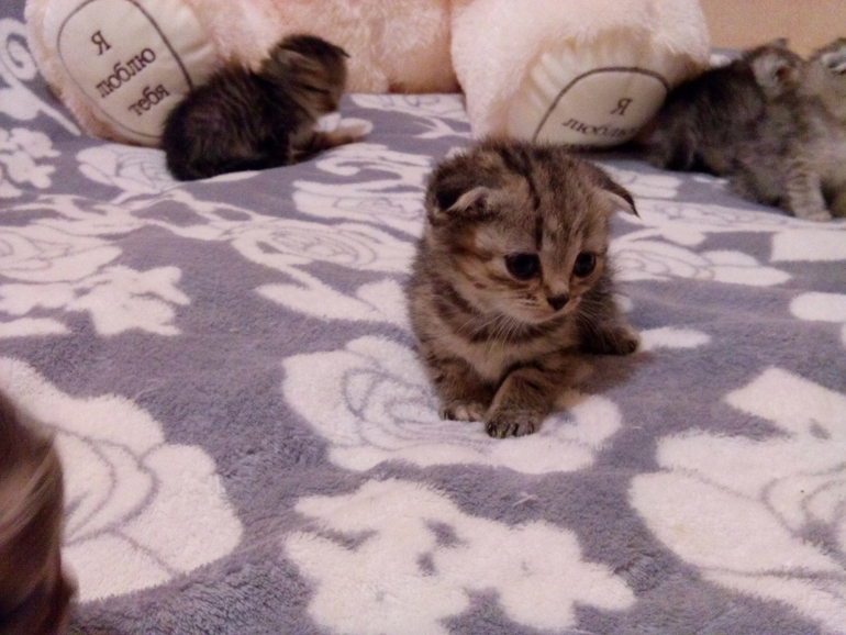 Котята стоят две тысячи. Кушают самостоятельно, сухой и влажный корм. Есть вислоухие-скотиш фолд, есть с прямыми ушками скотиш страйт. Окрасы Вискас и черепаховый. Все котики.