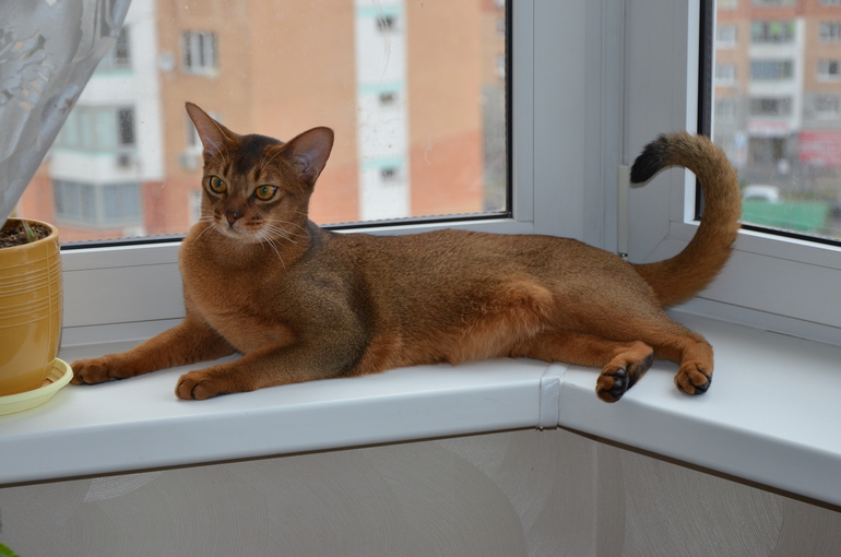 Ооо, очень ласковый. От этой ласки муж за лето чуть с ума не сошел. Он привык, что мы все дома, а тут мы уехали, муж на работе и у кота реально истерика случилась. Он не сидит на руках. Но всегда рядом, спит со мной рядом. Вообщем, очень довольна котом, только сейчас жуть как линяет. Порода абиссинец.все, что пишут про эту породу в инете, все правда. Характер для детей. Или нам повезло
