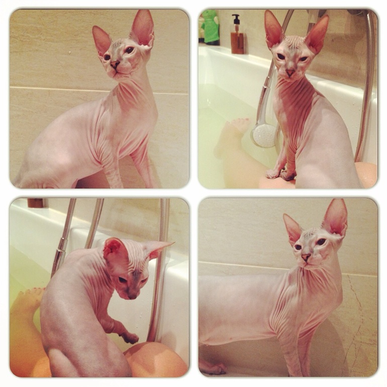 Наши любимцы!Вчера Мотя первый раз долго купалась в ванной со мной;)