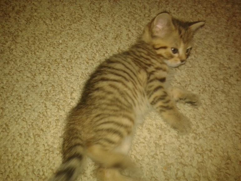 Он поямо как мой Тигрик в 2,5 месяца. Сейчас уже котофей, полоски и пятнышки на животике потерял, жаль. Тоже все говорили, что как уличный, ан нет! Цвет глазок, ширина хвоста, подшерсток - все говорят о породе. Прекрасной вам дружбы на долгие лет 20+