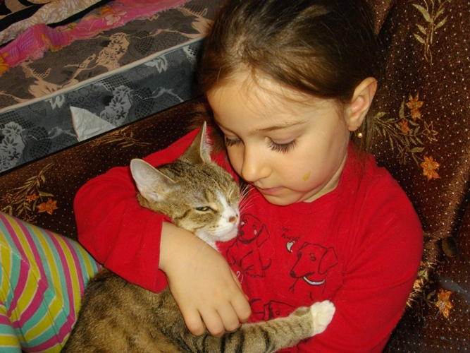 Девочки, этот кот - просто чудо! Добрый, умный, неприхотливый, на улицу пока выходить боится (с марта месяца у нас живет). Наташу обожает, ждет ее постоянно из школы или с улицы, спит в ногах у нее на кровати. Ни разу нигде не нагадил, ничего не подрал, на столы не прыгает! Наташу НИ РАЗУ даже не попытался поцарапать или как-то припугнуть, хотя когда она играет с ним в "My little pony", у меня волосы под мышками дыбом встают))))
