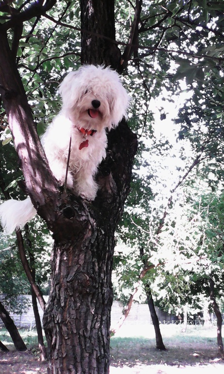 Забавные и милыеНе кидайтесь тапками,собака обожает сидеть на дереве:))) встанет около дерева и скулит,может она в прошлом была кошкой или белкой???!!!
