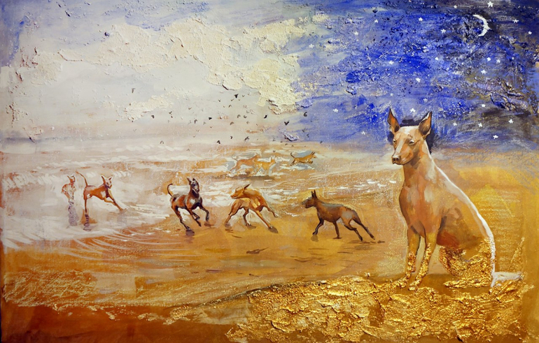На этой картине изображены две наши любимые собаки: Армани(Мексиканская Голая собака) и Гемма(Перуанская Голая собака)