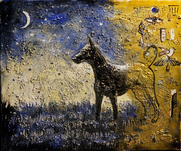 Мы придумали сюжет: "приход в наш мир голой собаки из легенды", выполненно в оригинальном стиле Дарьи Воробьёвой))