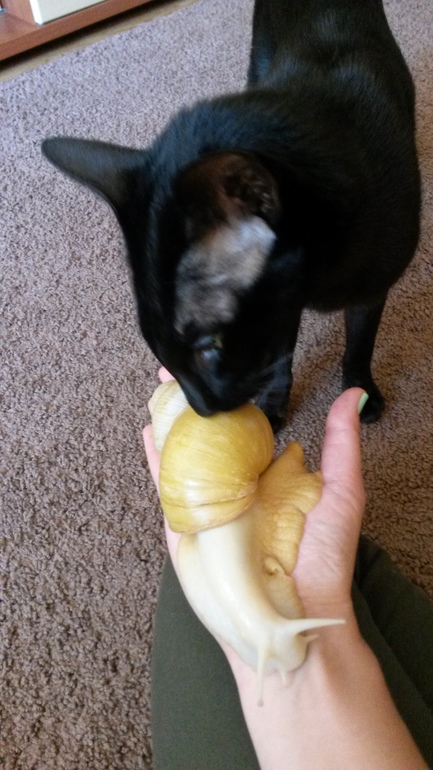 Какие они огромные! Очень красивые. А кот дружит или охотится?Трудно за улитками ухаживать?Я их обожаю рисовать.