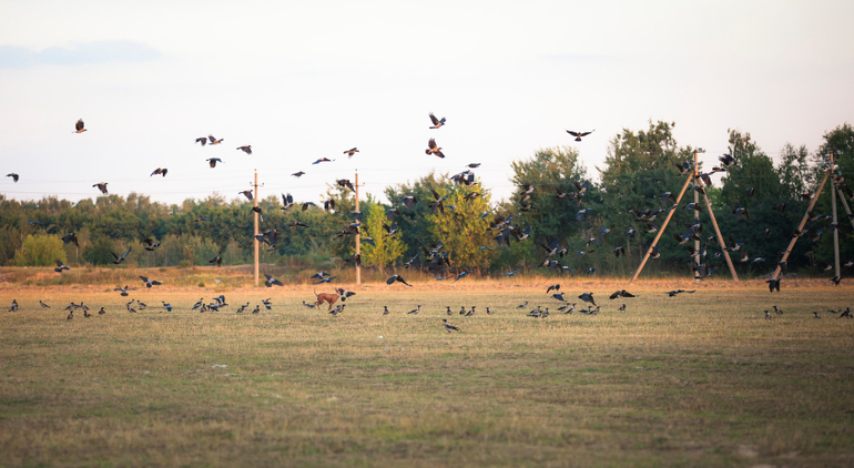 Интересное о животныхНа поле, где мы гуляем очень много ворон. Они собираются в огромные стаи, от которых иногда в "жуть бросает"...