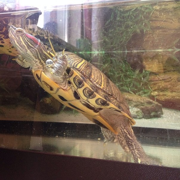Наши любимцы!Как же пусто и не комфортно в квартире без животных... Решила я и первым у нас появился красноухий черепах. Купили мы его лет 6 назад маленьким, с 5 рублевую монетку. Он нас радовал и рос)
