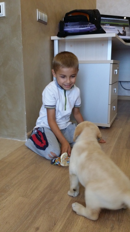 Наши любимцы!Сегодня привезли нашего Стива)))) он такой хорошенький .такой игривый и послушный .уже понимает команды нельзя и идет к тебе если его позвать .у мамы моей шотландский сеттер. С лабрадорами впервые столкнулись. В 4 месяца на дрессуру пойдем . Так как знаю что в собаку если сразу вложить , потом проще будет . Стив у нас от титулованных родителей (мама и папа шведы ). Так что собака выставочная .уже весной заводчик нас ждет на выставке )))