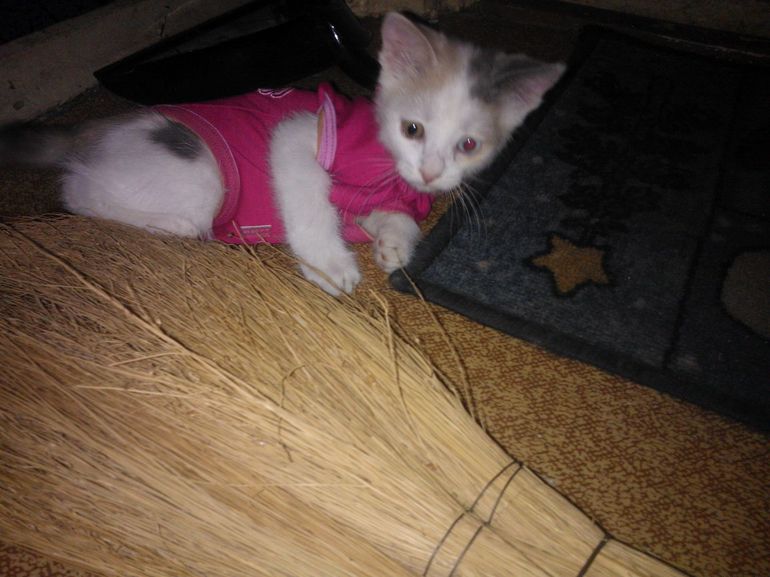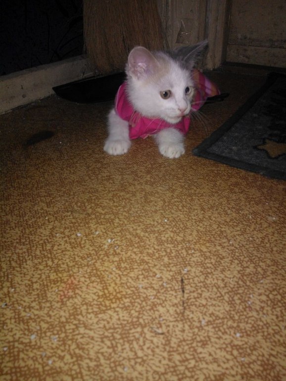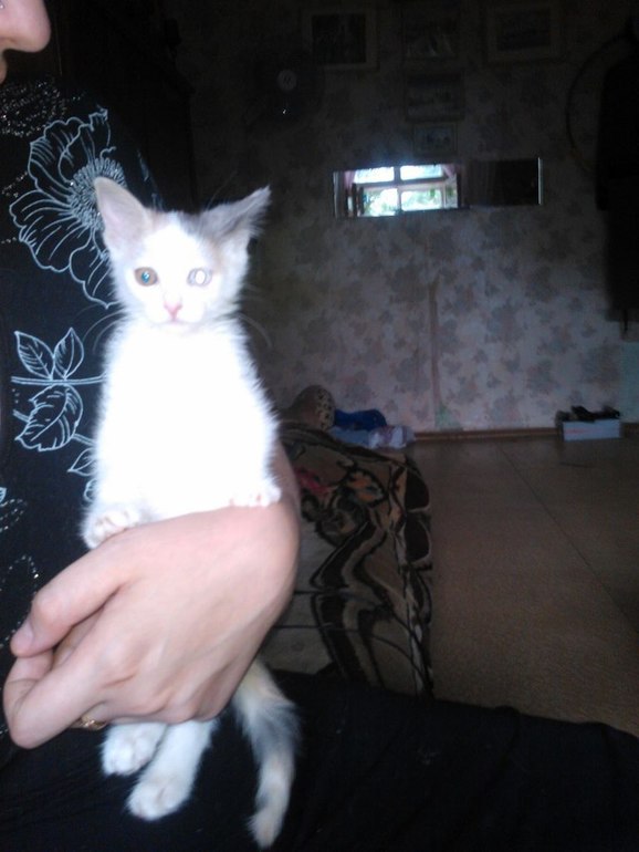 Вообщем история с этим котёнком приключилась такая, мой друг примерно недели 2 назад спас вот такую крошку от смерти, одна деваха (его знакомая) взяла этого котёнка и кинула его со всей дури об шкаф, из за того что сходила "в туалет" не в то место, в итоге она подумала что котёнок умер, положила его в пакет и выбросила на помойку, в итоге она позвонила вот этому другу со словами и в панике "я её убила", он как раз пошел на эту помойку и увидел что котёнок еле-еле двигается, был весь извините за подробности в крови и говне, ну и выходил его за 4 дня и отдал нам, а мы ей только рады, такому чуду!!!)