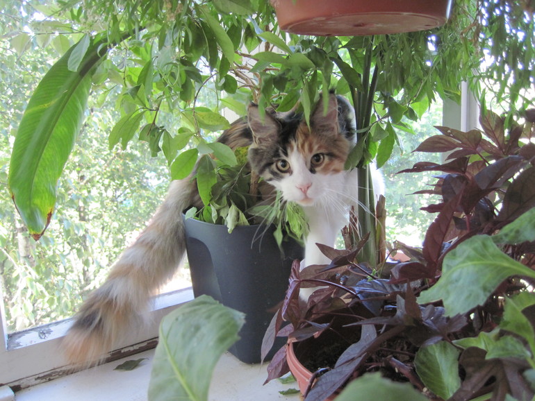 Так же всё лето она то пряталась в джунглях, то изображала из себя цветочек :) И ловила там мух.