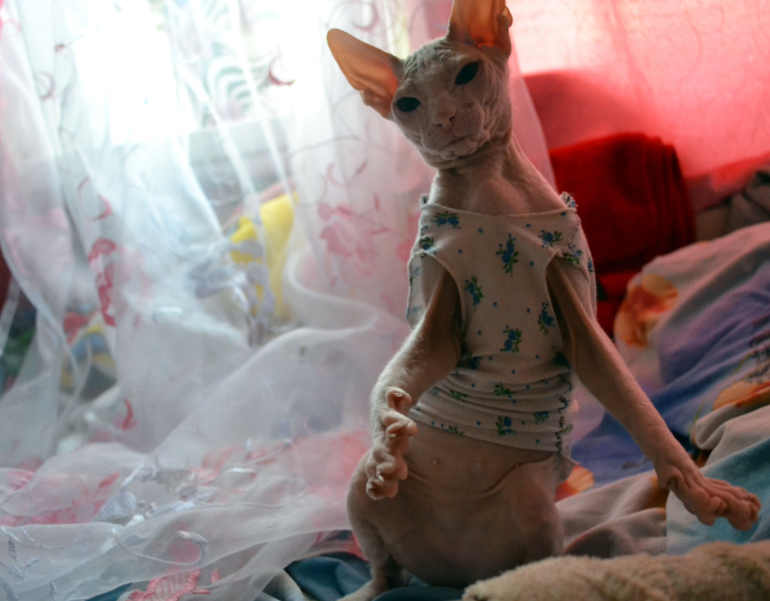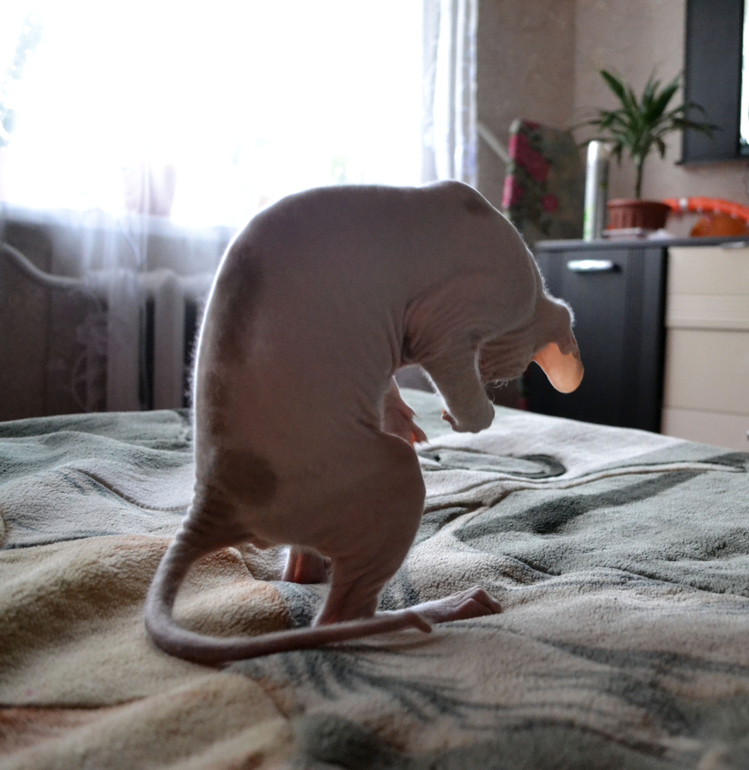 сфинкс полная противоположность британцем. есть с чем сравнить))) этот котик полная преданность хозяйке)) ласкучий до ужаса и умный.