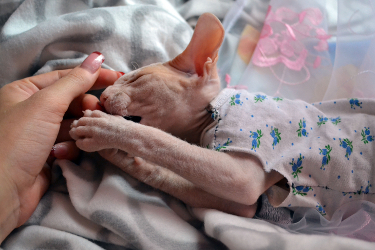 Он в ней на малыша похож))))))) я вот тоже о таком мечтаю, но у меня британка с ужасным характером так что если заведу еще сфинкса то меня выселят из дома))))