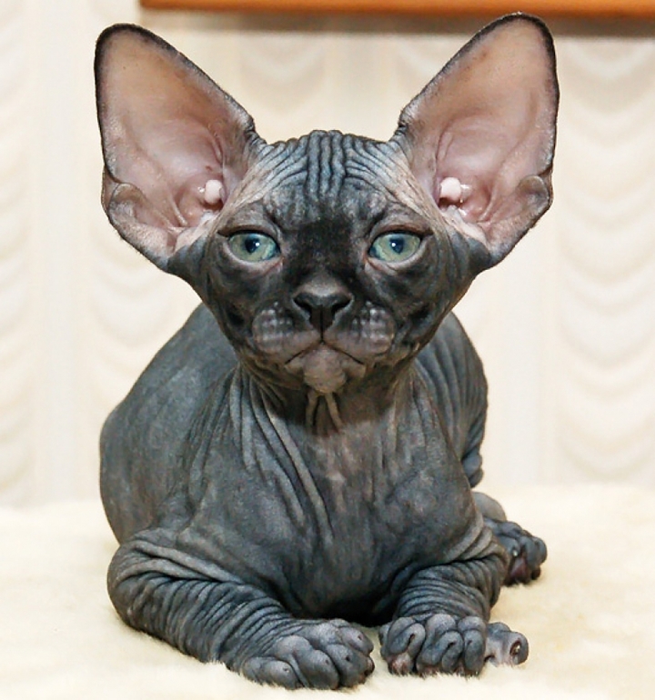 У нас сфинкс. Ничего сложного в уходе нет) к детям отлично, они его крутят вертят как хотят)) ему только в кайф))),но он у нас аллергичный..сушка ему не подходит..а так замечательный котя!)