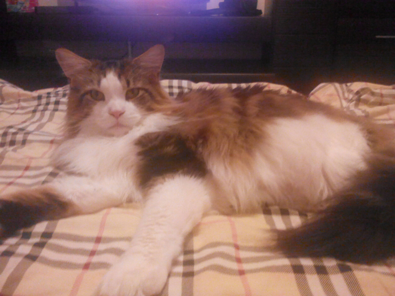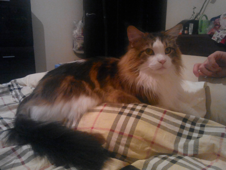 к нам он попал уже 6-ти месячным, гладим его когда хотим,но если ему не хочется встает и уходит,доча на него из-за этого злиться,просто играет с ним лазерной указкой,оба довольны))))))))))))