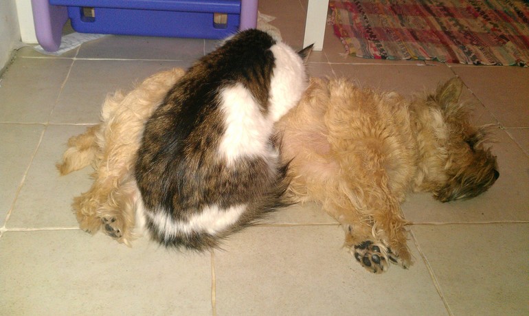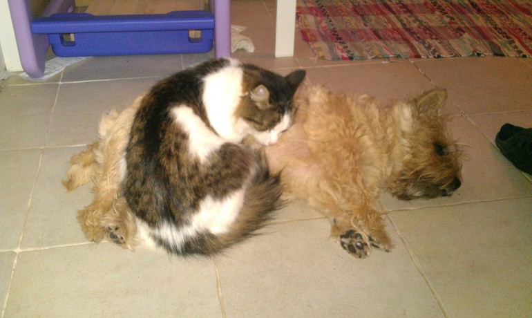 Класс) У меня тоже кошка с собакой лучшие подружки  baby.gif
