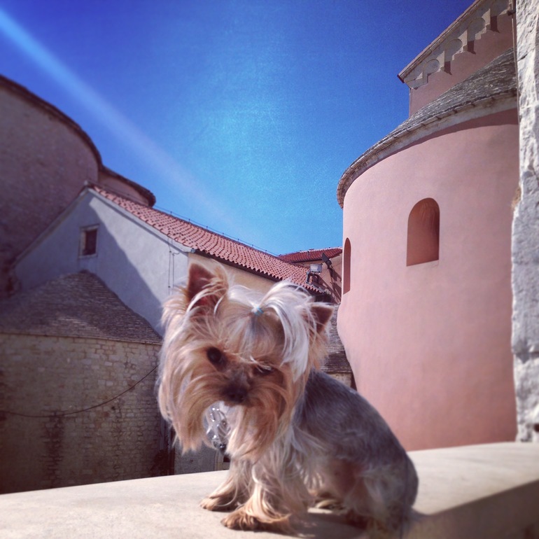 Зато брали их с собой в Хорватии несколько раз,гуляли по городу Задар и купались с ними один раз в городе Нин.Не было волн и плавали обе,было так же полно собак,чему удивилась...