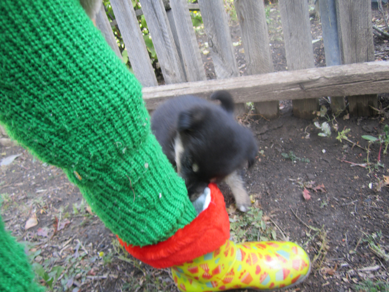 Наши любимцы!Сегодня утром под нашей машиной обнаружился вот такой малыш)Я не разбираюсь в собачьем возрасте,но вроде бы ему месяца два-три. Не представляю откуда он взялся,на нашей улице таких собак нет.Но то что его выкинули понятно всем.Очень активный мальчуган,пока без имени,его маленькая хозяйка еще не определилась) Надеюсь ему у нас будет хорошо)