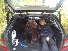 Дети и животныеВместе спасаются от клещей в лесу, ребенок их боится, а собака за компанию в багажнике сидит!